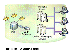 4. 统一消息角色. 该角色可以与交换机进行集成,以传输语音邮件和传真信息到Exchange邮箱中,并提供到Exchange Server的语音拨入功能。该角色和其服务在本文后面有更详细介绍。
