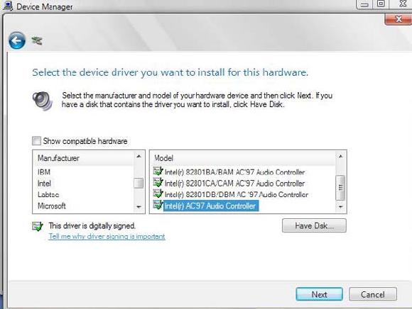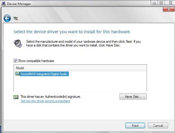我安装完Vista也有几天了,安装完成后就进入Device Manager看看都有什么驱动没装上。发现声卡的驱动是那个令人讨厌的黄色问号,第一反应就是把XP下的驱动装上去试试。显示安装成功,大喜,马上就发现问题了,虽然是安装成功了可是播放音频根本就不行Windows Media Player就报错,进入DX10查看也显示没有安装声卡驱动,郁闷。