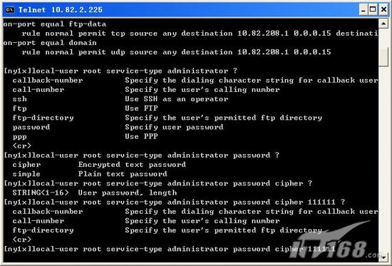 第二步:使用“local-user root service-type administrator”命令来修改root管理员帐号的命令。