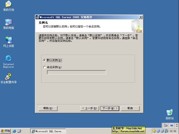 10、“实例名”配置中选择“默认实例”。