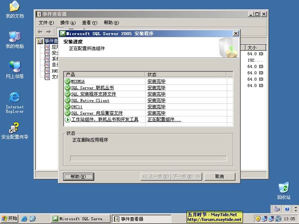 3、SQL2005在进行初始检测后开始执行安装 SQL2005 所需组件。