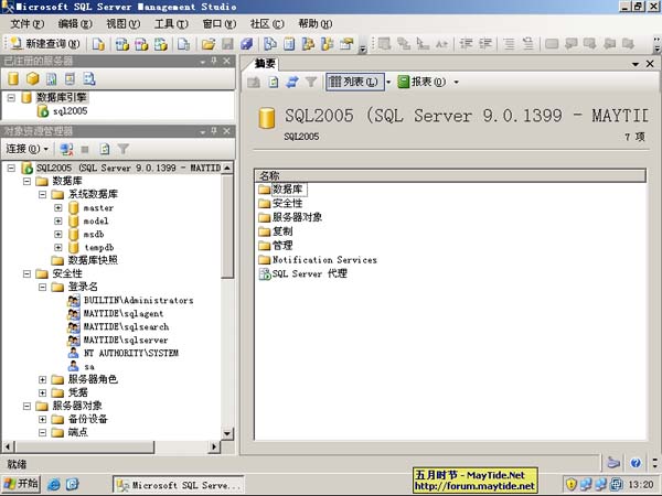 微软公司的SQL Server 2005发布已经有一段时间了,先前作了简单的测试安装,感觉确实有不小的改进,在操作上我还是有些不适应,毕竟我不是专门做数据库管理的。菜啊!