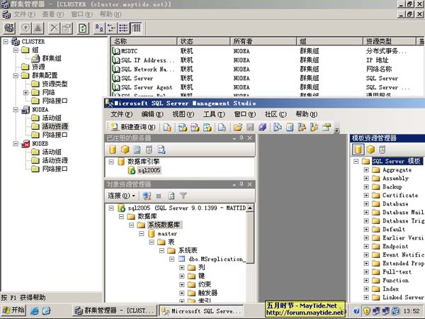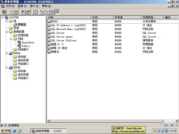 进入“群集管理器”中检查SQL2005群集的安装,发现没有问题。心理已经非常激动了!