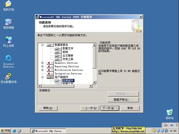 于是再次执行安装程序,哈哈,记起来了!之前也重新执行过安装不过放入的是CD1,所以组件选中服务项等都是不安装,我以为红叉代表删除,所以就没敢继续,如果当时直接从CD2执行安装估计也就成功了。
