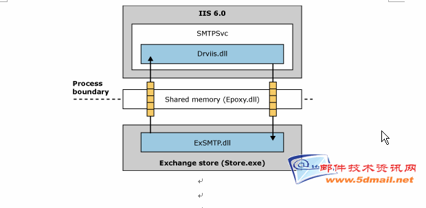ExSMTP.dll,这个DLL运行在Exchange数据库引擎的进程空间,这个组件负责建立数据库和Epoxy.dll的通信接口。