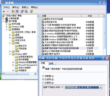 方法二:可见但不可用。还是在上面的组策略窗口中启用“防止从‘我的电脑’访问驱动器”即可。这样设置后,虽然可以在“我的电脑”中看到C、D分区,双击却打不开,也无法通过“运行”或地址栏进入分区。