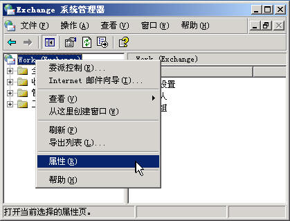 上二副图由于是两个森林的Exchange系统管理器,所以大家可能发现上面的组织名称不一样,一个是Work,一个是sle,我只是给大家看一下效果,所以请大家不要在意。那么如何把系统管理器转变成我第一个图所示的那样呢?其实很简单,大家可以在组织名称上击右键: