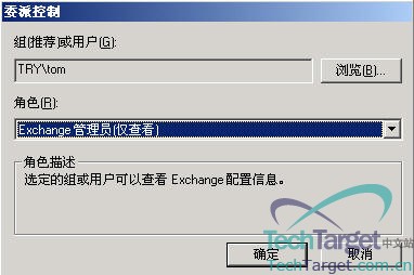 这里我们要选择“Exchange管理员(仅查看)”,然后点“确定”: