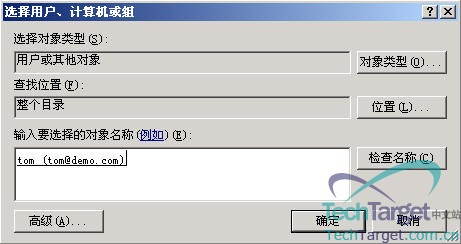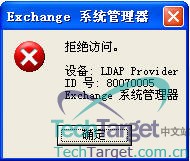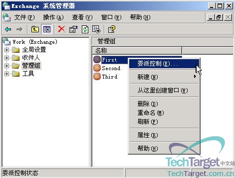 然后大家利用相同的操作,把“zs”用户委派成“Exchange管理员”,这里就不再写了。最后大家可以到客户端或注销一下,找成“tom”登陆,当“tom”去管理“First”管理组时不会有任何的问题,但如果去管理“Second”时,会发生如下错误提示: