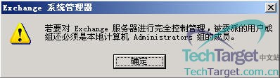 这个提示的意思我想大家都明白,只是本人觉得这个提示有点莫明其妙,因为我的实验结果是,在客户端,也就是没有安装Exchange服务器软件的PC上进行Exchange的管理,一定要安装管理工具,这个安装过程倒是一定要本地的Administrators组成员,但真正进行管理的操作似乎不是本地Administrator权限也没有什么关系,真不知道微软的这句提示到底想说明什么?