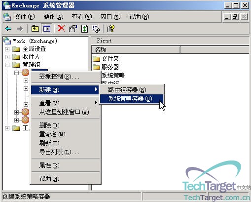 最后,来看一个系统策略的设置。依次展开“组织—管理组—First”,在“First”上击右键: