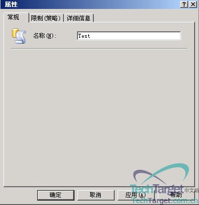 名称可以随便输入一个,我这里输入了一个“test”,然后点击“限制(策略)”: