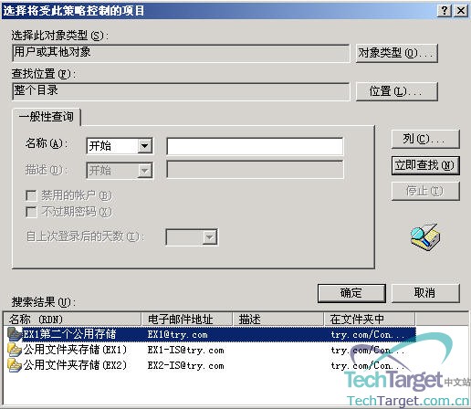由上面的几个操作可知,其实Exchange的很多信息是存在活动目录里的了吧。这里我们选择我们自己在上次新建的“EX1第二个公用存储”,然后点“确定”: