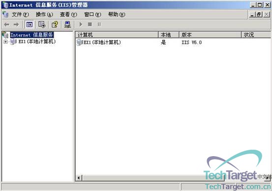 接下来我们转到EX1上,依次点击“开始—设置—控制面板—管理工具—Internet信息服务(IIS)管理器”: