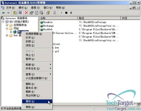 再依次展开“EX1—网站”,在默“默认网站”上击右键: