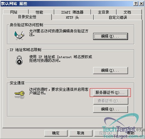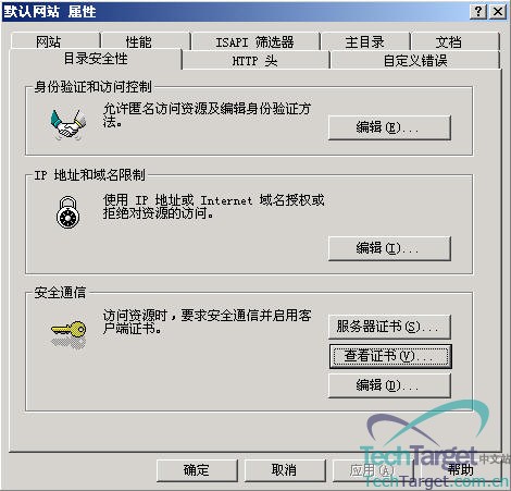大家可以看到,刚刚呈灰色的“查看证书”按钮已经呈可选状态了。最后点“确定”退出。好了,现在我们到客户端上去验证一下,打开IE,输入:https://ex1/exchange。请注意这里用的是HTTPS,不是HTTP: