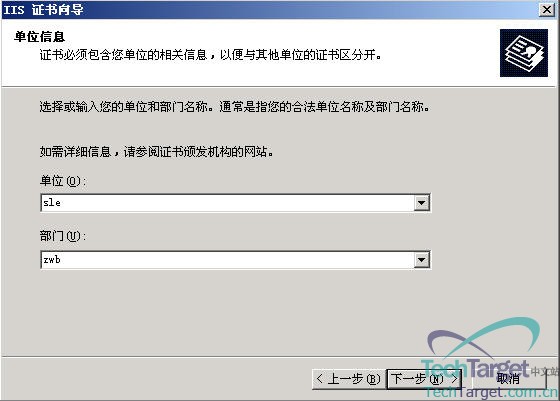 单位信息和部门信息,大家可以自行输入,完成后点“下一步”: