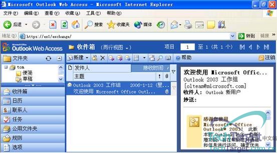 登录成功后呢,和我们前面没有启用表单身份验证时是一样的,操作上没有任何的区别。我也就不再讲述了。这篇文章就到这里了,在下一篇文章中,我将给大家讲解一下关于在OWA下如何修改密码的问题,OK,我的邮箱:hzswg@sohu.com,欢迎来信指正!