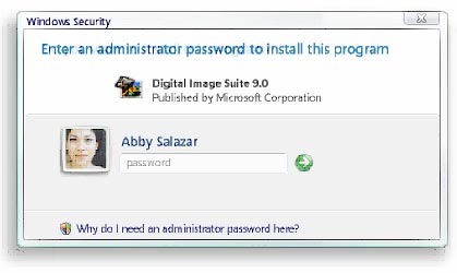 使用 Windows Vista 时,则不必做出让步。用户的工作效率会很高,且可以防止会滥用管理权限的 malware 的攻击,而且仍可运行几乎所有的应用程序。当用户确实需要执行管理任务时,Windows Vista 会确认其请求。这最终意味着,所需的技术支援将减少,当配置于有限权限下运行的应用程序时所花费的工程时间将更少。