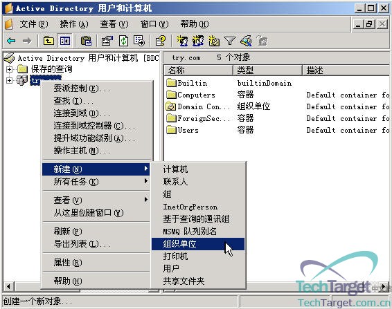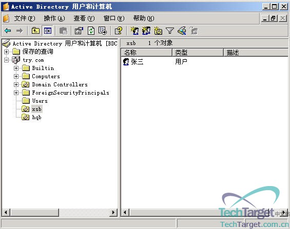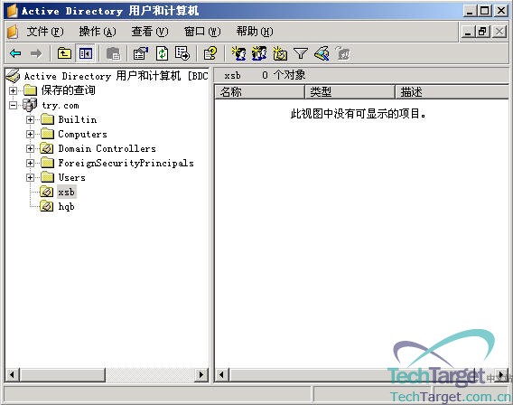 输入“xsb”点“确定”,然后用同样的方法再建立一个名为“hqb”的OU: