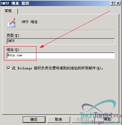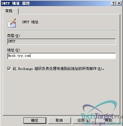 在很多的大型公司里面,可能存在的并不是只有一个域,那么为了从用户的E-Mail地址里体现一些其它信息,我们可能需要对不同属性的用户采用不同的域名后缀,比如中国的,在后面加上CN,这样别人一看到含有CN的地址就知道该用户是中国的。但是我们发现,如果仅仅是在“AD用户和计算机”控制台上用“Exchange任务”开设的邮箱都是一样的,很显然这达不到我们的要求,我们现在来设想一个场景:某个公司都有很多的部门,那我们现在希望不同部门的用户的邮箱地址的后缀是不一样的,比如我这个实验中,假设有两个部门,一个是销售部,一个是后勤部,那我们现在的要求是销售部的用户的邮箱地址的后缀是@xsb.try.com。而后勤部的用户的邮箱地址的后缀是@hqb.try.com。那我们现在就来进行配置: