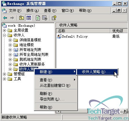 定位到“组织—收件人—收件人策略”,并在上面击“右键”: