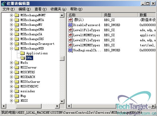 定位到“HKEY_LOCAL_MACHINE—SYSTEM—CurrentControlSet—Services—MSExchangeWEB—OWA”: