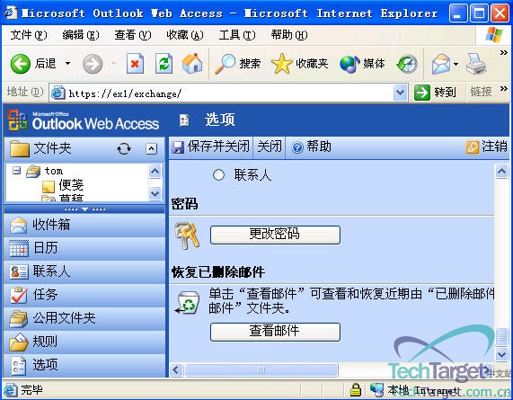 至此我们可以发现OWA下修改密码的功能已经被启用了。另外我再提醒大家两个地方: