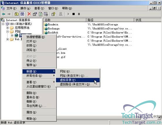 依次展开“EX1—网站—默认网站”,并且在默认网站上击“右键”: