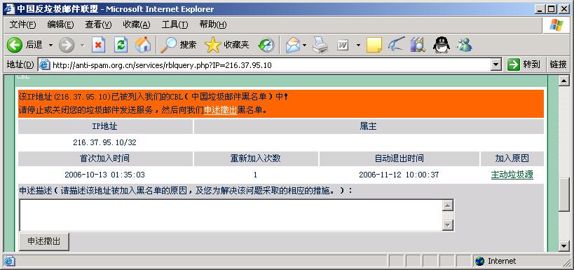 中国反垃圾邮件联盟( http://www.anti-spam.org.cn )是国内比较知名的一个反垃圾邮件组织.