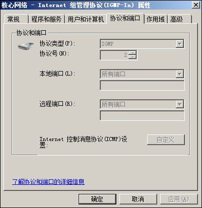 对规则进行配置时,可以从各种标准中进行选择:例如应用程序名称、系统服务名称、TCP端口、UDP端口、本地IP地址、远程IP地址、配置文件、接口类型(如网络适配器)、用户、用户组、计算机、计算机组、协议、ICMP类型等。规则中的标准添加在一起;添加的标准越多,具有高级安全性的Windows防火墙匹配传入流量就越精细。