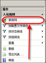 ·增加规则-点击在Windows高级安全防火墙MMC中的新建规则按钮,开始启动新规则的向导。