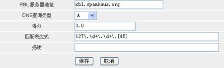 主要通过利用互联网公开的rbl 资源判断垃圾邮件的可能性。目前RBL 一般都通过DNS 查询的方式提供对某个IP或域名是否是垃圾邮件发送源的判断。另外,由于国外大多数rbl 都对来自中国的ip 有“歧视”,所以我们并不能完全依靠rbl 来判断一封邮件是否是垃圾邮件,只能根据rbl 查询结果判断邮件是否垃圾邮件的可能性。可设置以下参数,定制rbl: