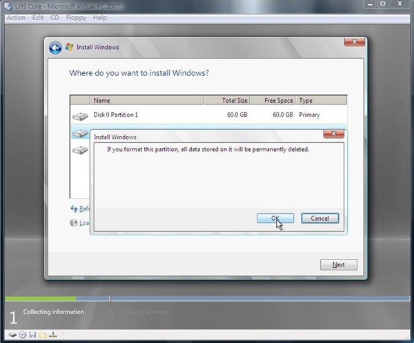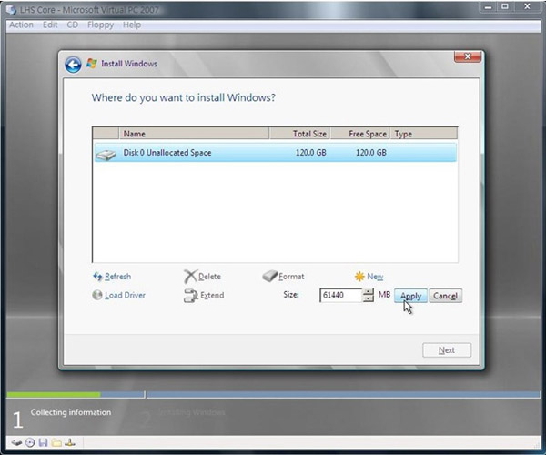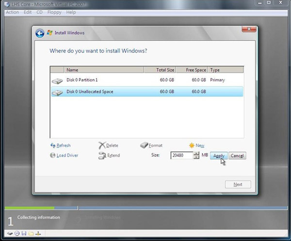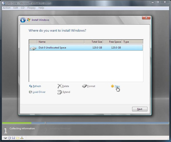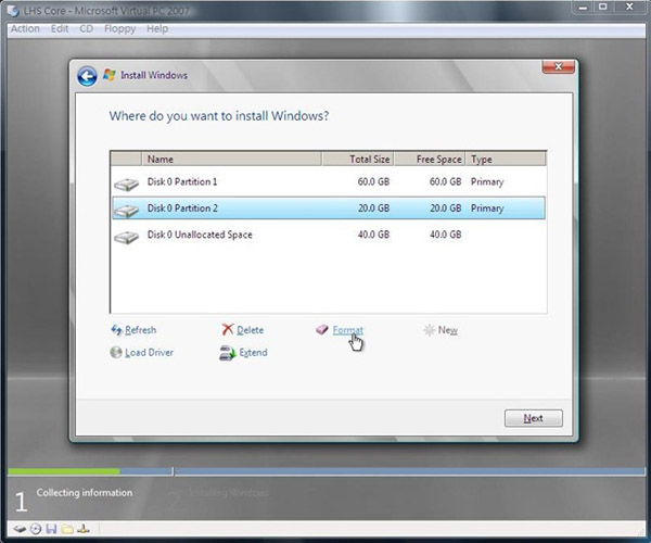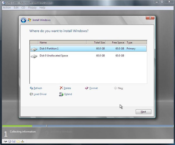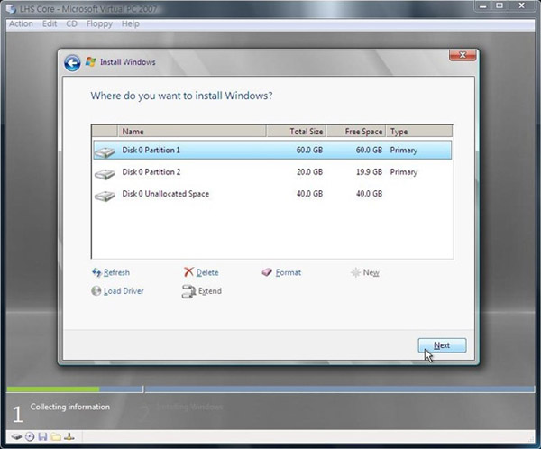 15.完成後我們回來選擇第一個磁區,之後按下Next進行之後的安裝動作