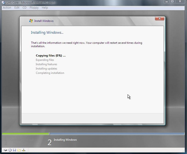 16.系統開始進行安裝,之後完全沒有其他的人工安裝步驟,可以先去倒杯茶、休息一下,之後系統會自動重新開機,完成 Windows Server 2008 的系統囉