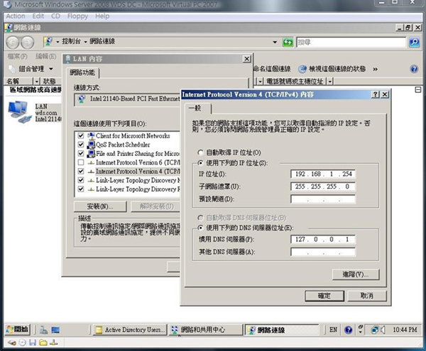 26.此外我們也要先確認網域控制站所處的 IP 位置為何,有助於我們等一下設定新機器的 IP 位置。