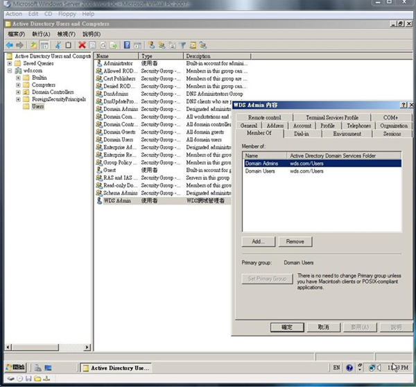 27.最後我們新增一個使用者,並且賦予它 Domain Admins 的權限,在筆者的環境中,使用者帳號為 wdsadmin,密碼為 P@ss0rd