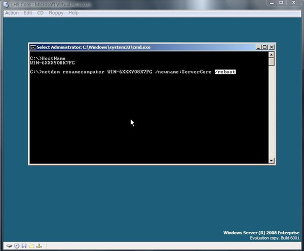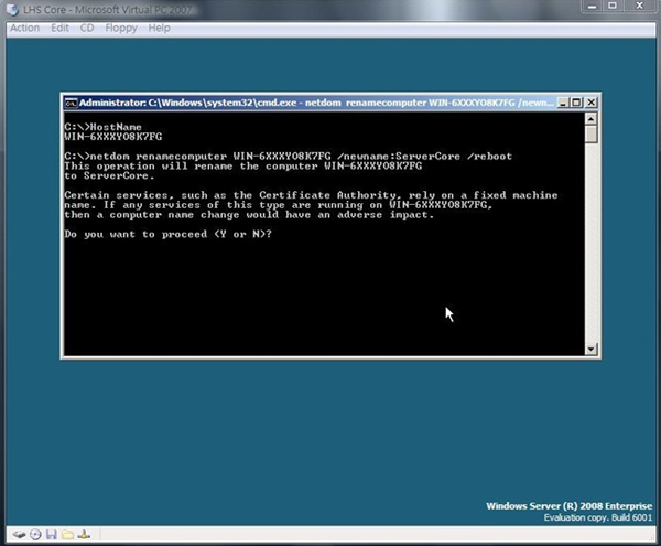 28.回到我們新安裝的機器上,我們第一件要做的事就是『更改電腦名稱』,首先我們要先確定一下目前的電腦名稱為何?因此在視窗中打入『HostName』,按下Enter,就會出現目前這台電腦的電腦名稱了,如圖所示,筆者的電腦名稱目前為:WIN-6XXXYO8K7FG