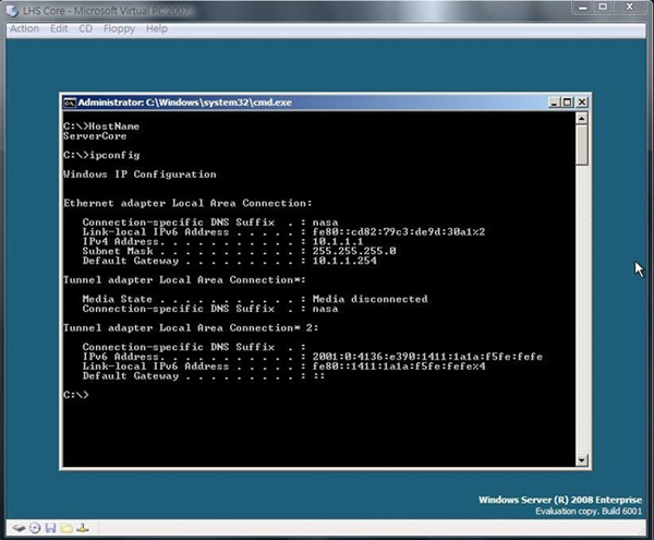 沒錯!Windows Server 2008 其中有個最重大的改變就是『伺服器核心』《Server Core》的安裝方式,這項改變不僅僅改變了原本大家對於微軟 Windows 系列產品的印象,因為 Windows 的出現與成功就是因為改變了原本 DOS 系統下只有命令提示字元這樣不親切的使用模式,怎麼現在會變成走回頭路呢?還是因為要學 Linux?其實當然這樣的改變是有原因的,在伺服器作業系統的世界中,美麗的圖形化介面並非是使用者最重要的需求,因此在 Windows Server 2008 的版本中,依照不同伺服器所扮演『不同的伺服器角色』,提供了另外一種沒有圖形化操作介面的安裝方式,就是所謂的『伺服器核心 (Server Core)』安裝方式。在這樣的模式下,提供了 Windows Server 2008 核心的功能,讓使用者能夠藉由指令的方式進行操作。除此之外還可搭配 Power Shell 這項威力強大的工具,讓系統管理人員可以更有效的進行伺服器的管理,如此一來不僅僅可以降低實際伺服器硬體本身的需求以及負擔,配合其他由 Windows Server 2008 建置的伺服器角色,便大大提高了整體資訊環境的安全性。