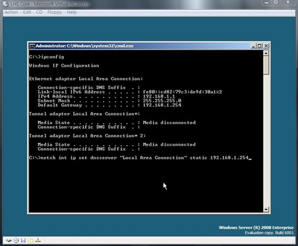 Netsh int set dnsserver "Local Area Connection" static 192.168.1.254
