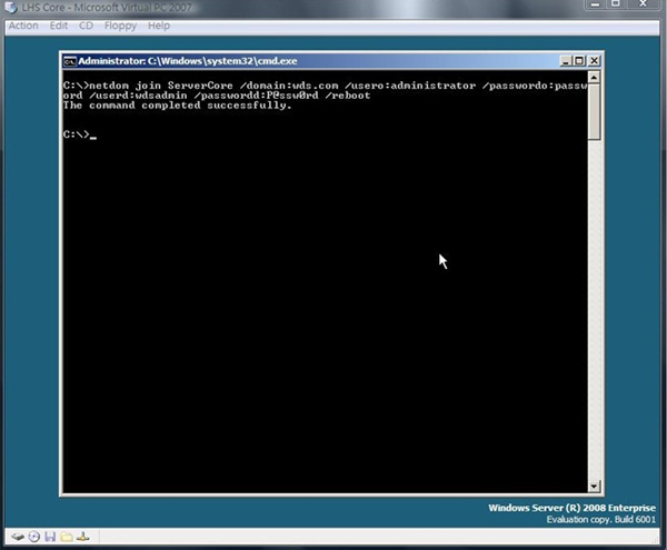 Netdom join 電腦名稱 /domain:網域的完整名稱 /usero:本機具有管理員權限的帳號 /password: 本機具有管理員權限的帳號