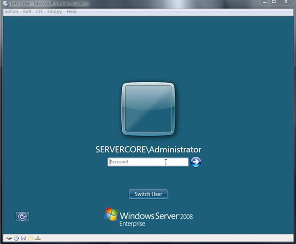 43.之後我們重新回到安裝 Server Core 的機器,然後我們點選 Switch User