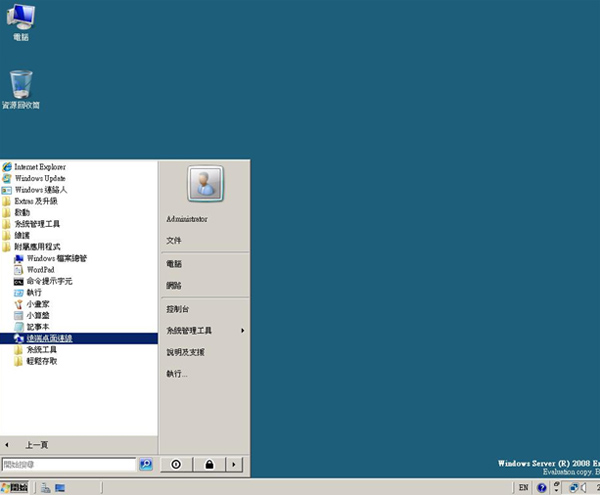 51.接下來回到網域控制站或者可以利用其他有安裝遠端桌面程式的電腦,開啟遠端桌面連線程式。