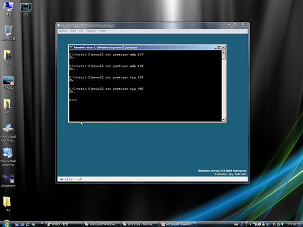 Netsh firewall set portopening tcp 137Netsh firewall set portopening tcp 138Netsh firewall set portopening tcp 139Netsh firewall set portopening tcp 445