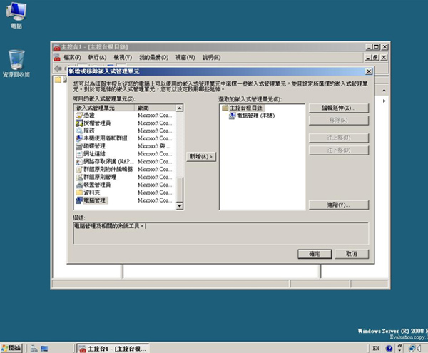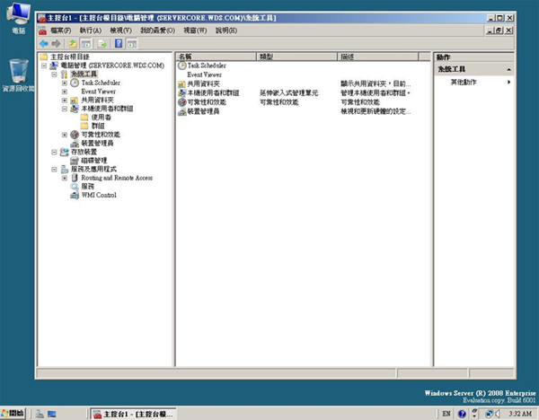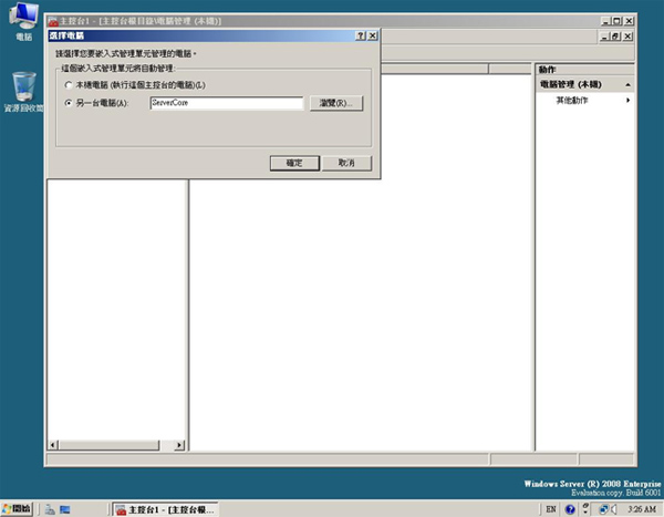 | 利用指令開啟 Server Core MMC 管理服務 | |