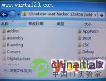 在对话框的地址栏中输入“c:\windows\system32\net.exe user hacker 123456 /add”,输入完毕后点击一下旁边的“前进”按钮,这时会有一个“命令提示符”窗口一闪而过。虽然登录界面看起来没有什么变化,但我们已经在系统中创建了一个名为hacker,密码为123456的普通账户(图3)。