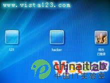 Step5:接下来我们将它提升为系统的管理员,再次在地址栏中输入“net localgroup administrators hacker /add”并回车,仍旧是一个“命令提示符”窗口一闪而过。ok,现在我们已经是系统的管理员了,关闭当前的对话框窗口,点击登录界面上的“切换用户”按钮。接下去请相信你的眼睛,hacker账户已经俨然出现在了登录界面上(图4)。下面就不用多说了,用hacker账户登录,在Vista系统中尽情的爽吧。