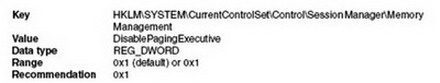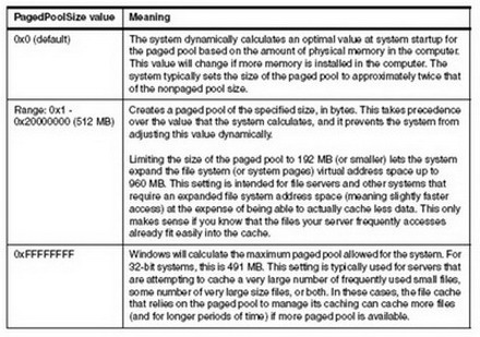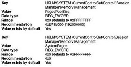 一些应用程序可以需求比系统默认更多的内存池空间,表5中注册值PagedPoolSize可以帮助确认是否有重组的内存池可用。