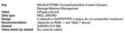 默认状态下,Windows给I/O锁操作设定的内存限制为512KB,随着内存的增加,这个值可以做相应增加,如表6.