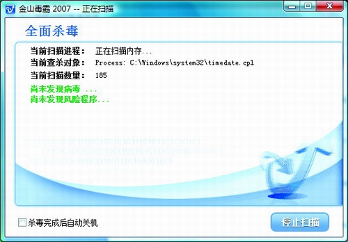 该版本毒霸能顺利完成对系统文件的扫描,其中在扫描过程中,用户选择“暂停”“停止”等选项都不会影响该扫描功能。